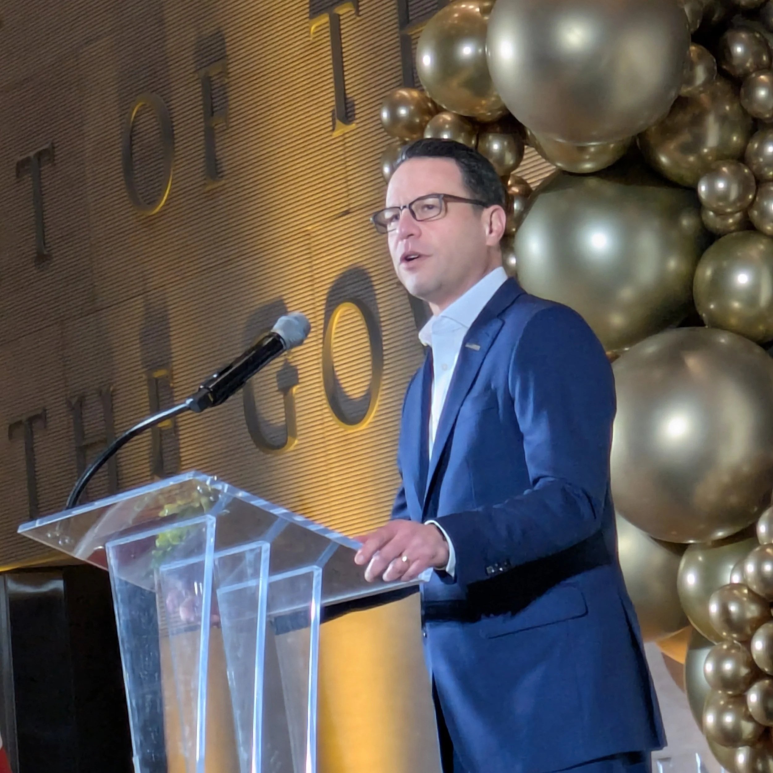 Pennsylvania Governor Josh Shapiro speaking at the 50th anniversary celebration of Philadelphia Gay News.